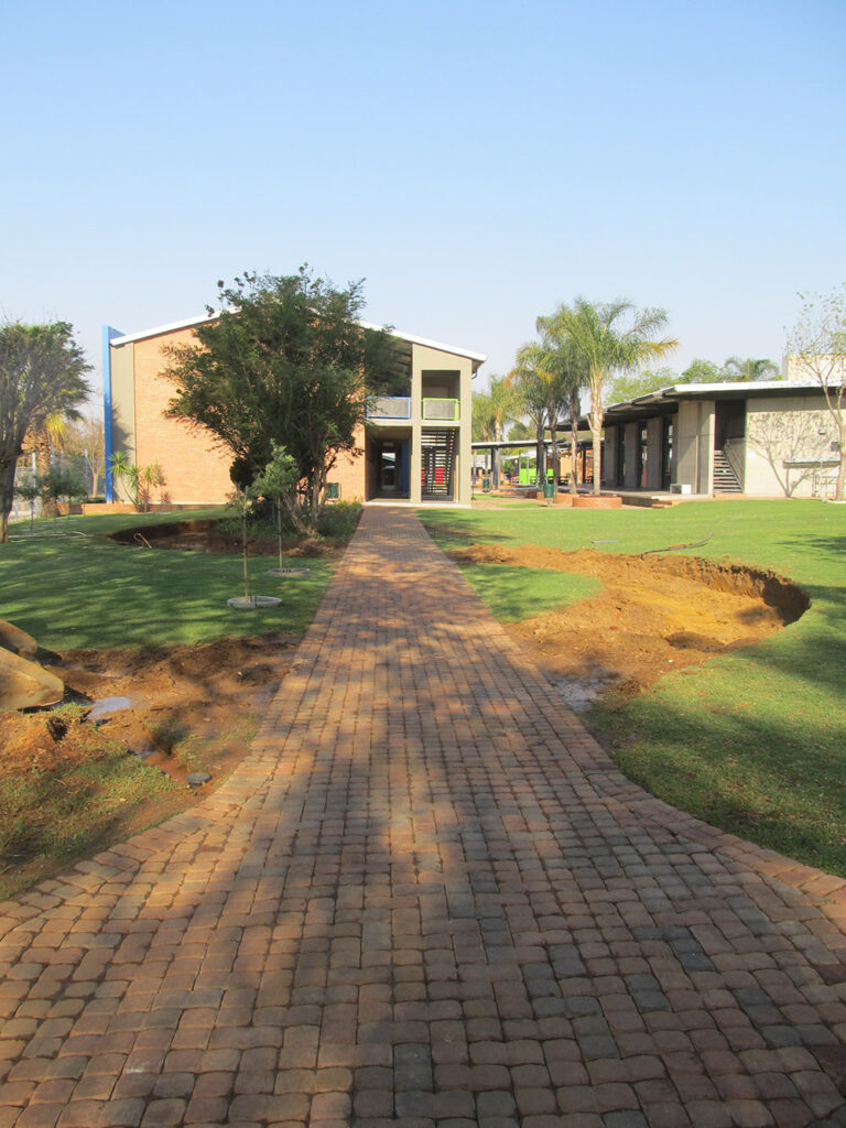 Die beeldhouwerk is opgerig op ‘n groot oop grasperk langs ons nuwe uitbreiding. Die idee is dat die beeldhouwerk nie ‘n kliniese, statiese werk moet wees nie, maar eerder interaktief is. Dus kan die leerlinge deur dit stap en op en oor dit klim, rustig op die bankies sit en self deel word van die kunswerk. Aanvanklik sou die werk uit betonblokke bestaan het en is op ‘n kleiner skaal beplan. Die idee het egter so gegroei en is so sterk deur ons direkteure ondersteun, dat dit eerder in ‘n landskapwerk ontaard het. Om die werk betyds klaar te kry, het ons besluit om van gabion strukture gebruik te maak en dit met verskillende kleure klip te vul. Ons skool se gronde en argitektuur is baie modern en die gabions sluit baie goed daarby aan. Laastens het die verskillende kleure klip ook simboliese betekenis omdat dit aansluit by die verskillende fases in ‘n mens se lewe en die “leap of faith” wat nodig is om aan te beweeg.