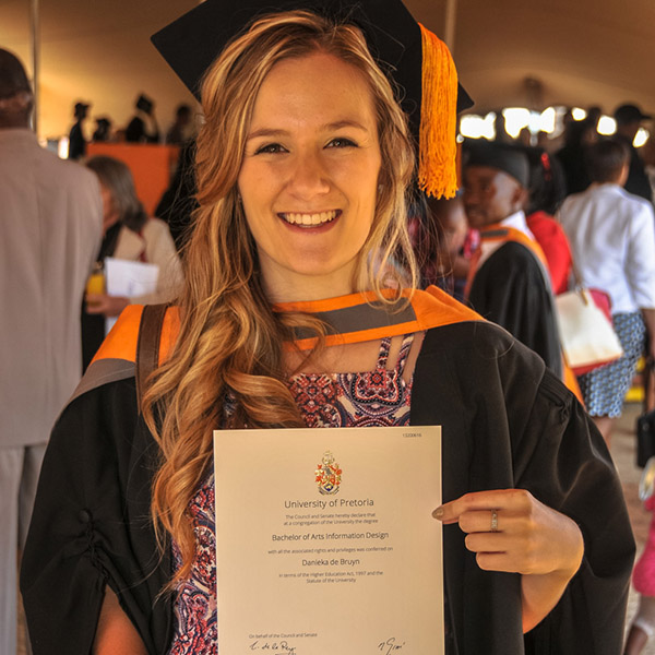 - Danieka de Bruyn – BA Inligtingsontwerp, UP 2016
