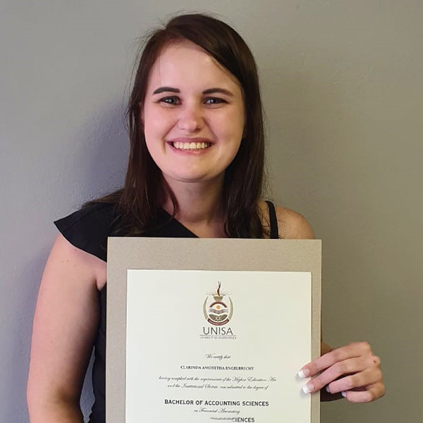 - Clarinda Engelbrecht - B Com Rekeningkunde, UNISA 2020